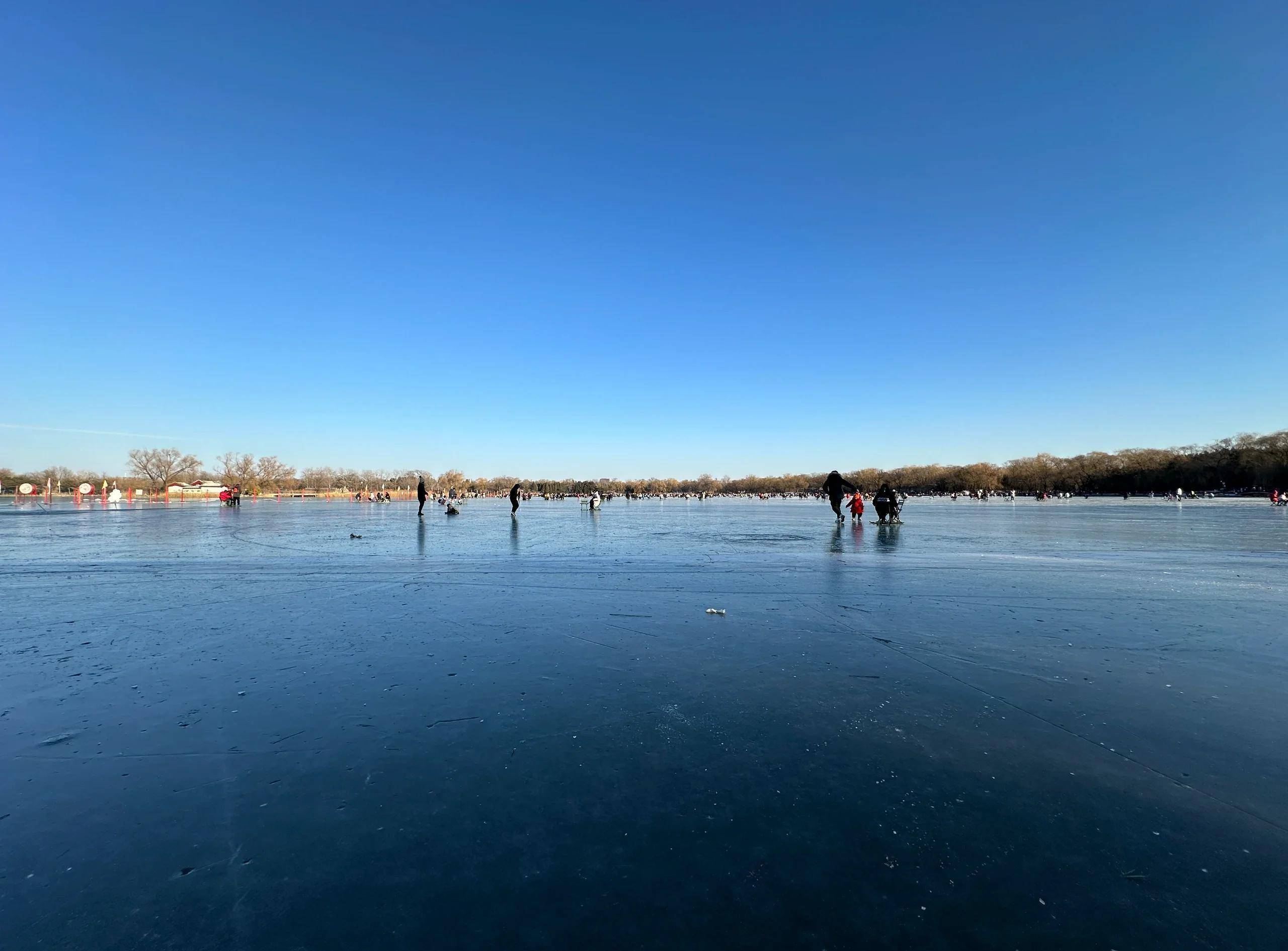 要说这事儿怎么火起来的,还得从元旦假期说起。本来圆明园冰场就是北京冬天的热门打卡地,今年工作人员灵机一动,搞了个“冰上贪吃蛇”活动。规则特简单:大家手拉手排成队,跟着前面的人绕着冰场标志物走S形路线,谁要是掉队或者撞到旁边的人,就算“出局”。结果没想到,这玩法一推出就彻底火了,每天早𰱭点冰场一开,队伍就能从入口排到湖中心,最长的时候能有上万人同时参与,手机地图上都能看到冰场区域标着“拥堵”。